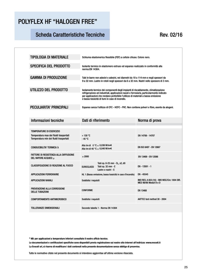 * NB: per applicazioni a temperature inferiori consultate il nostro ufficio tecnico.