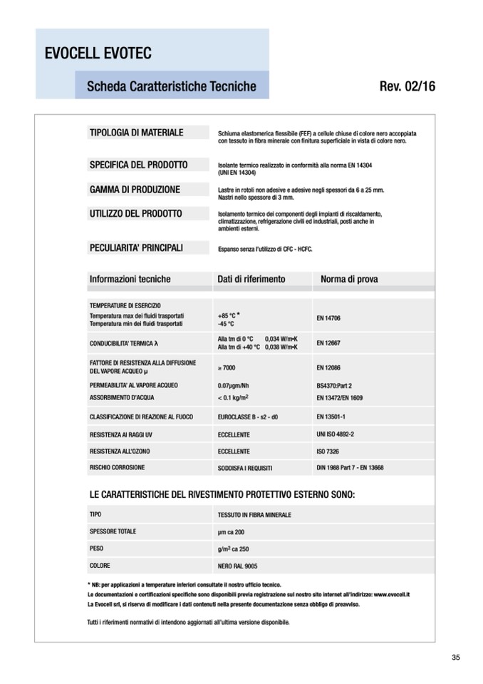 Isolante termico realizzato in conformità alla norma EN 14304