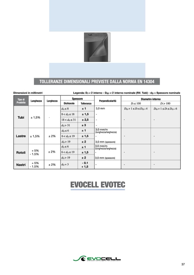 Legenda: Di = Ø interno - DiD = Ø interno nominale (Rif. Tubi) - dD = Spessore nominale