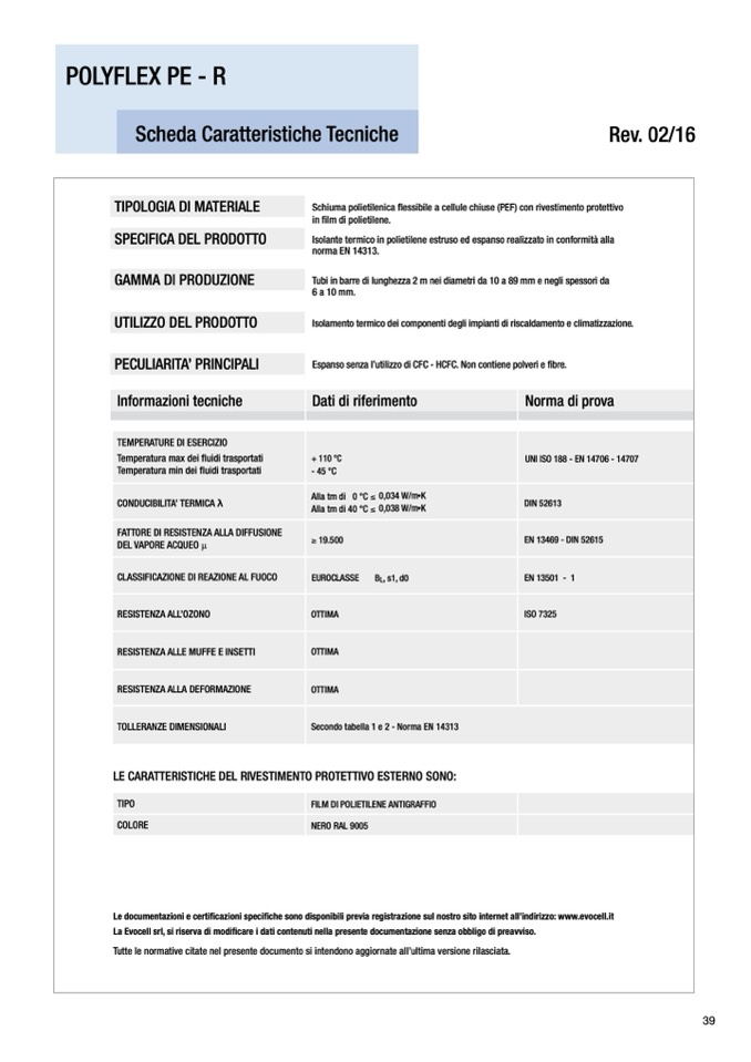 Espanso senza l’utilizzo di CFC - HCFC. Non contiene polveri e fibre.