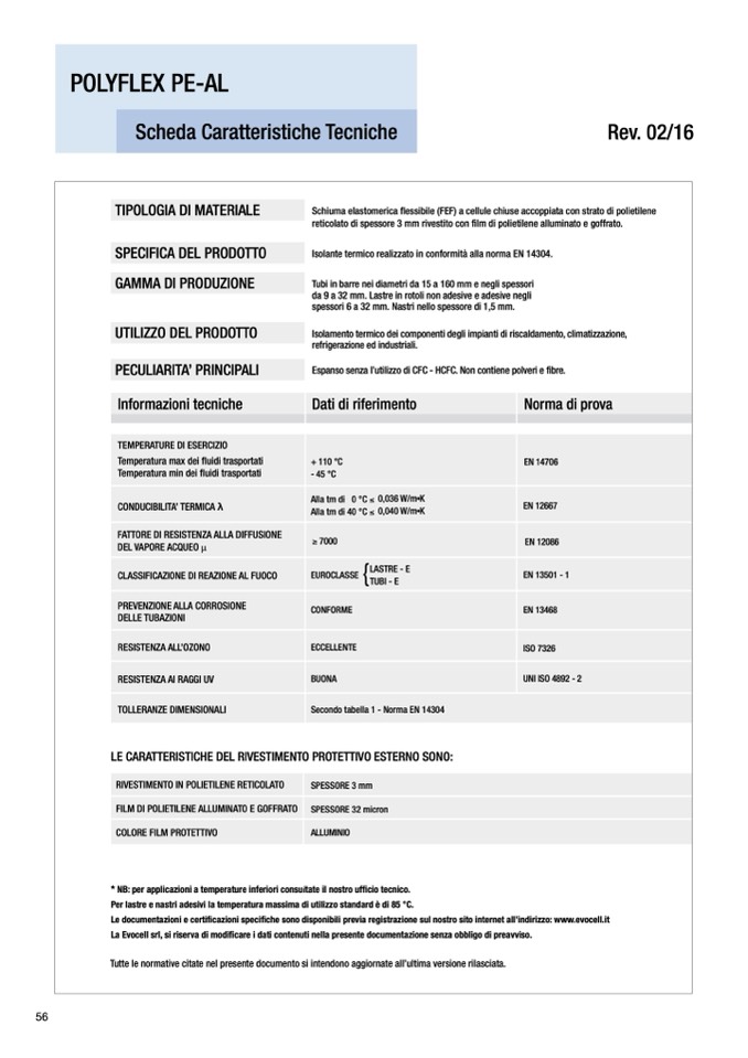 Isolante termico realizzato in conformità alla norma EN 14304.