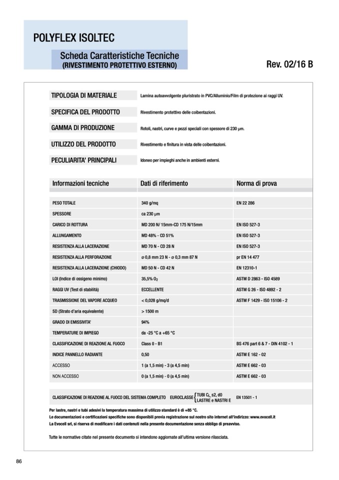 Rotoli, nastri, curve e pezzi speciali con spessore di 230 μm.