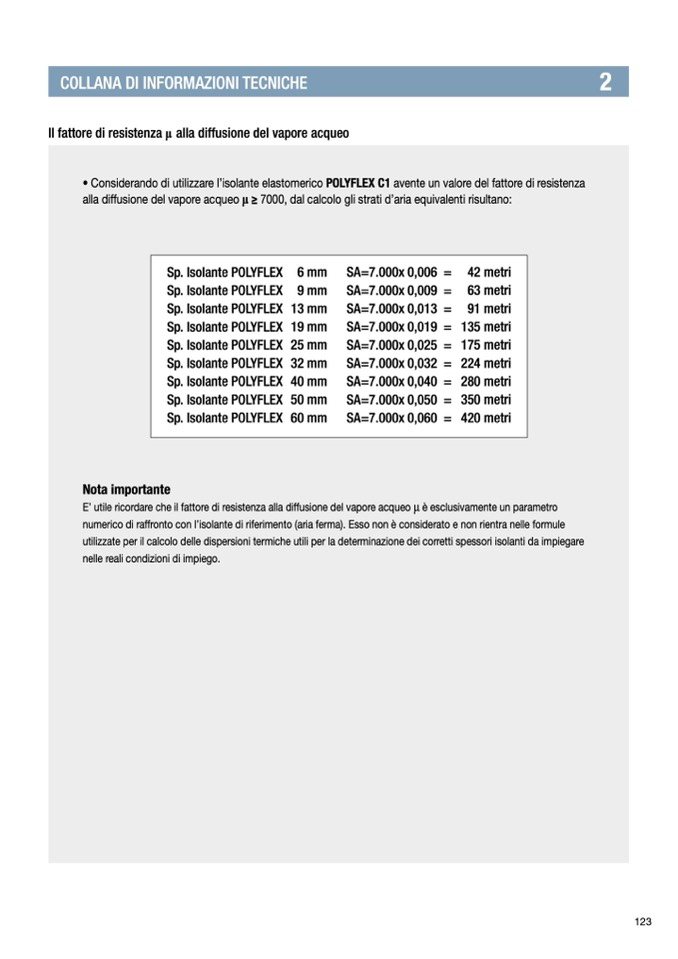 • Considerando di utilizzare l’isolante elastomerico POLYFLEX C1 avente un valore del fattore di resistenza
