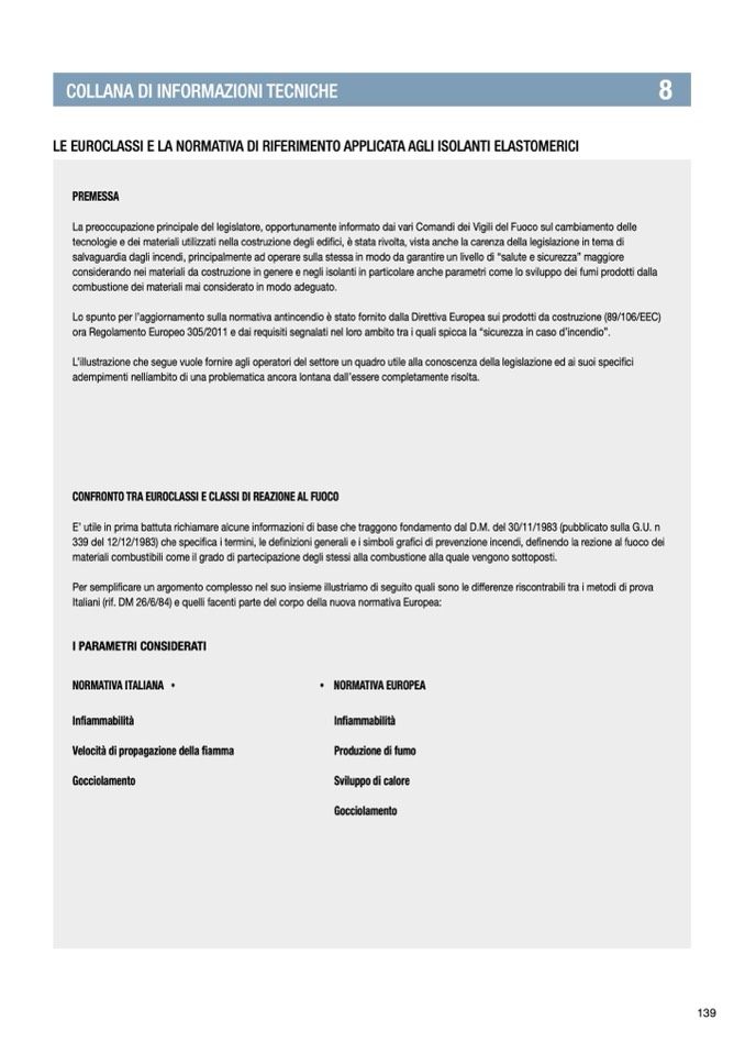ora Regolamento Europeo 305/2011 e dai requisiti segnalati nel loro ambito tra i quali spicca la “sicurezza in caso d’incendio”.