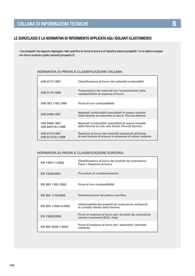 I due prospetti che seguono riepilogano nello specifico le norme di prova e di classifica italiane (prospetto 1) e le relative europee