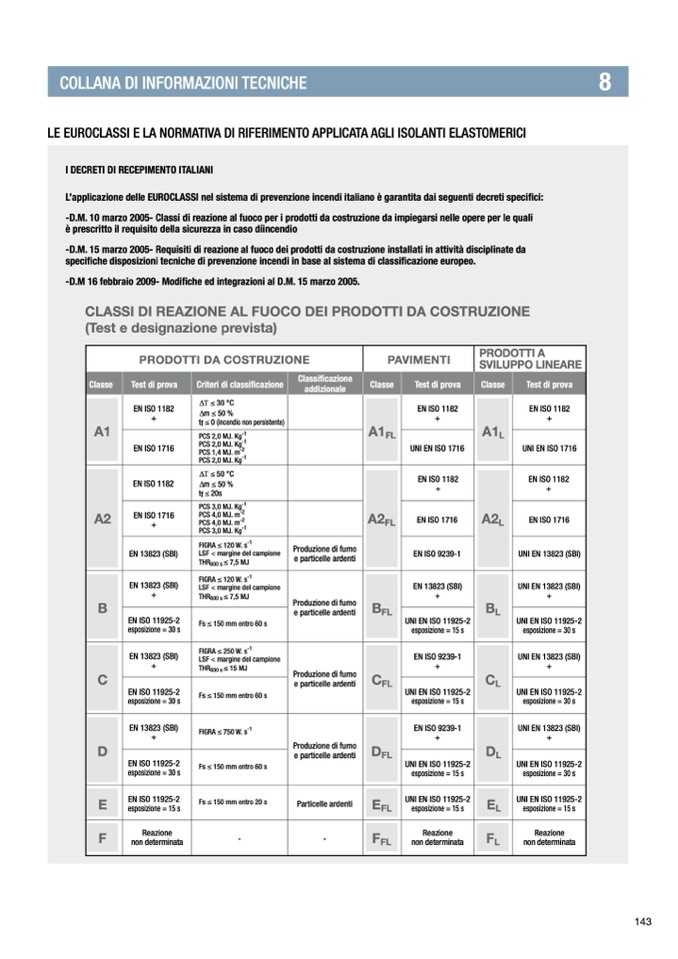 L’applicazione delle EUROCLASSI nel sistema di prevenzione incendi italiano è garantita dai seguenti decreti specifici: