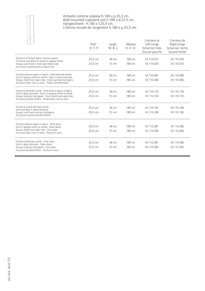 Armadio colonna sospesa h.180 x p.25,5 cm.
