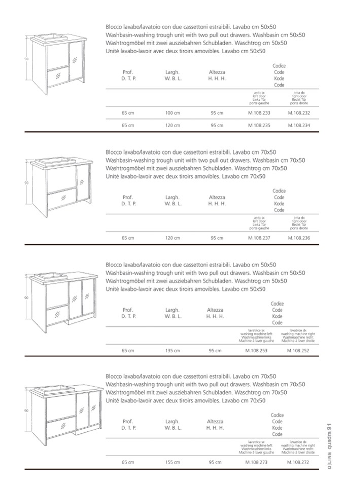 Unité lavabo-lavoir avec deux tiroirs amovibles. Lavabo cm 50x50