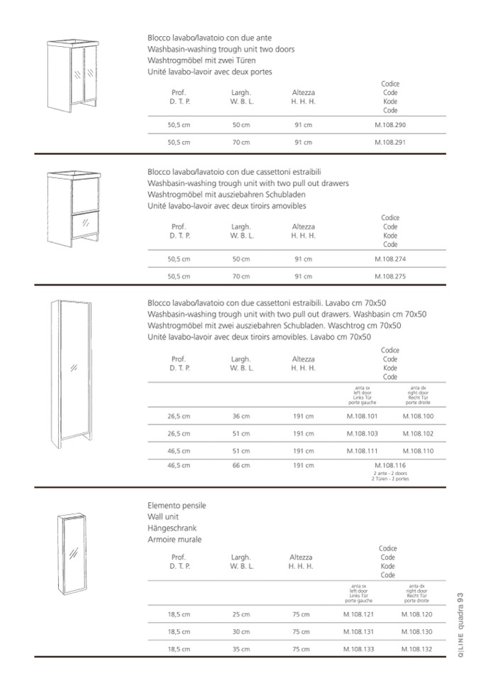Blocco lavabo/lavatoio con due ante
