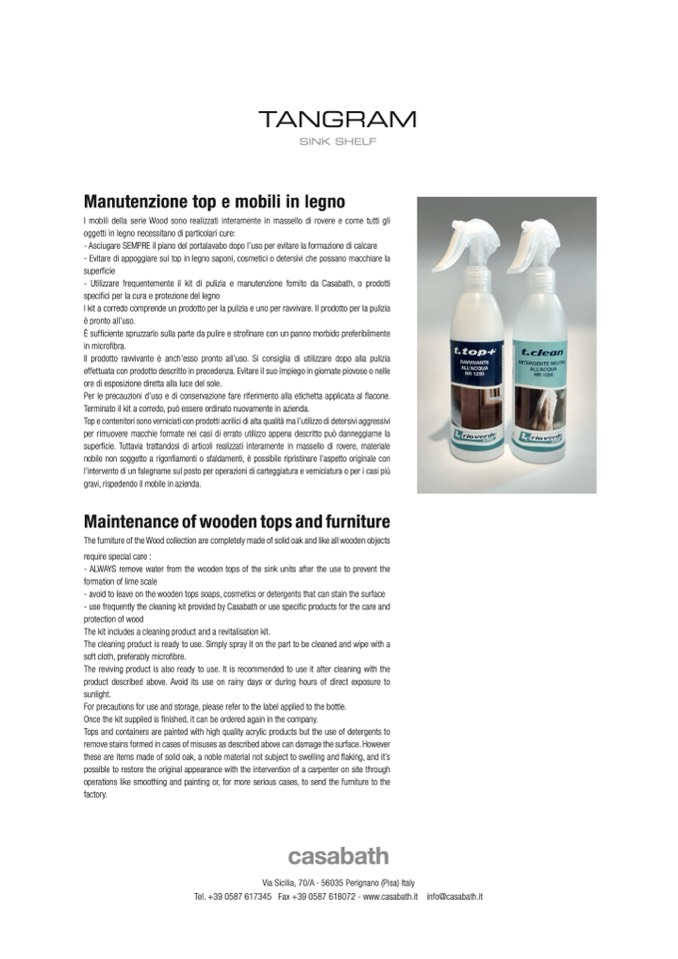 - avoid to leave on the wooden tops soaps, cosmetics or detergents that can stain the surface