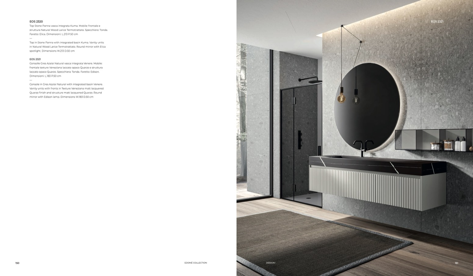 laccato opaco Quarzo. Specchiera: Tonda. Faretto: Edison.