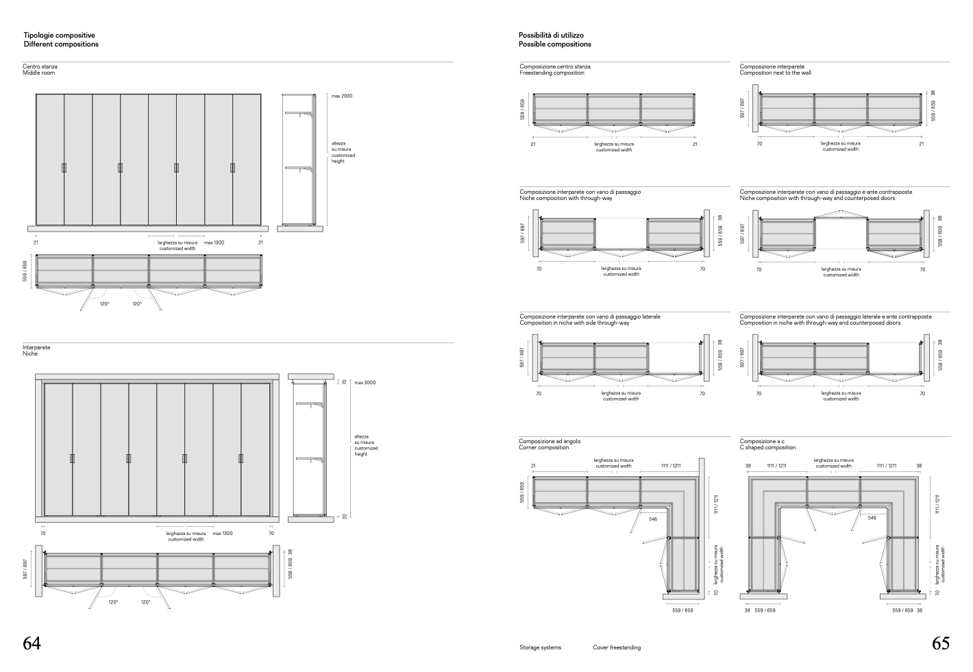 Composizione interparete con vano di passaggio laterale e ante contrapposte