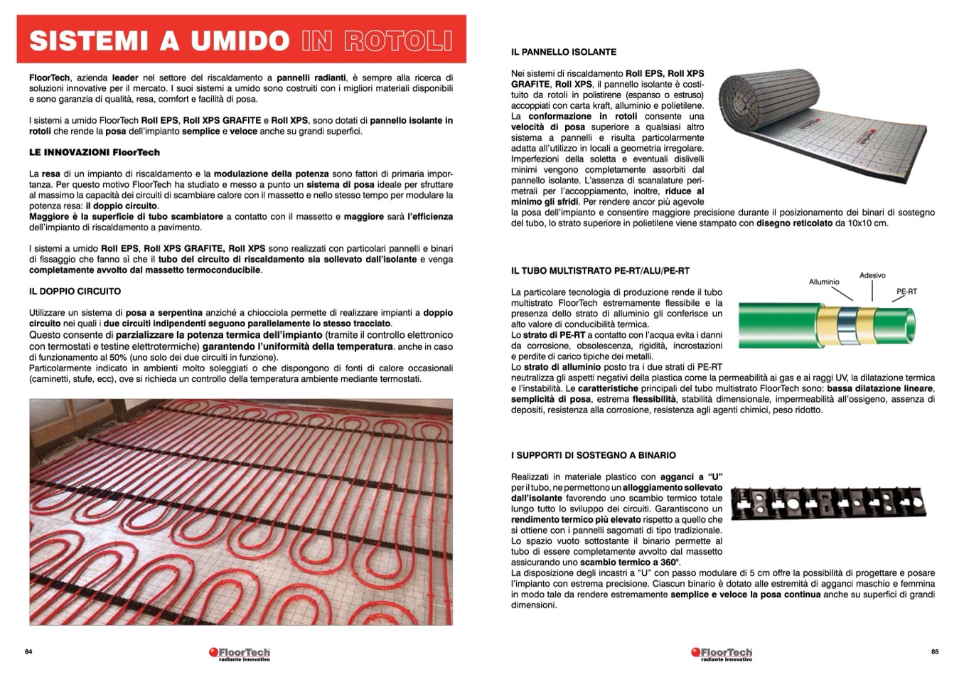 I sistemi a umido FloorTech Roll EPS, Roll XPS GRAFITE e Roll XPS, sono dotati di pannello isolante in