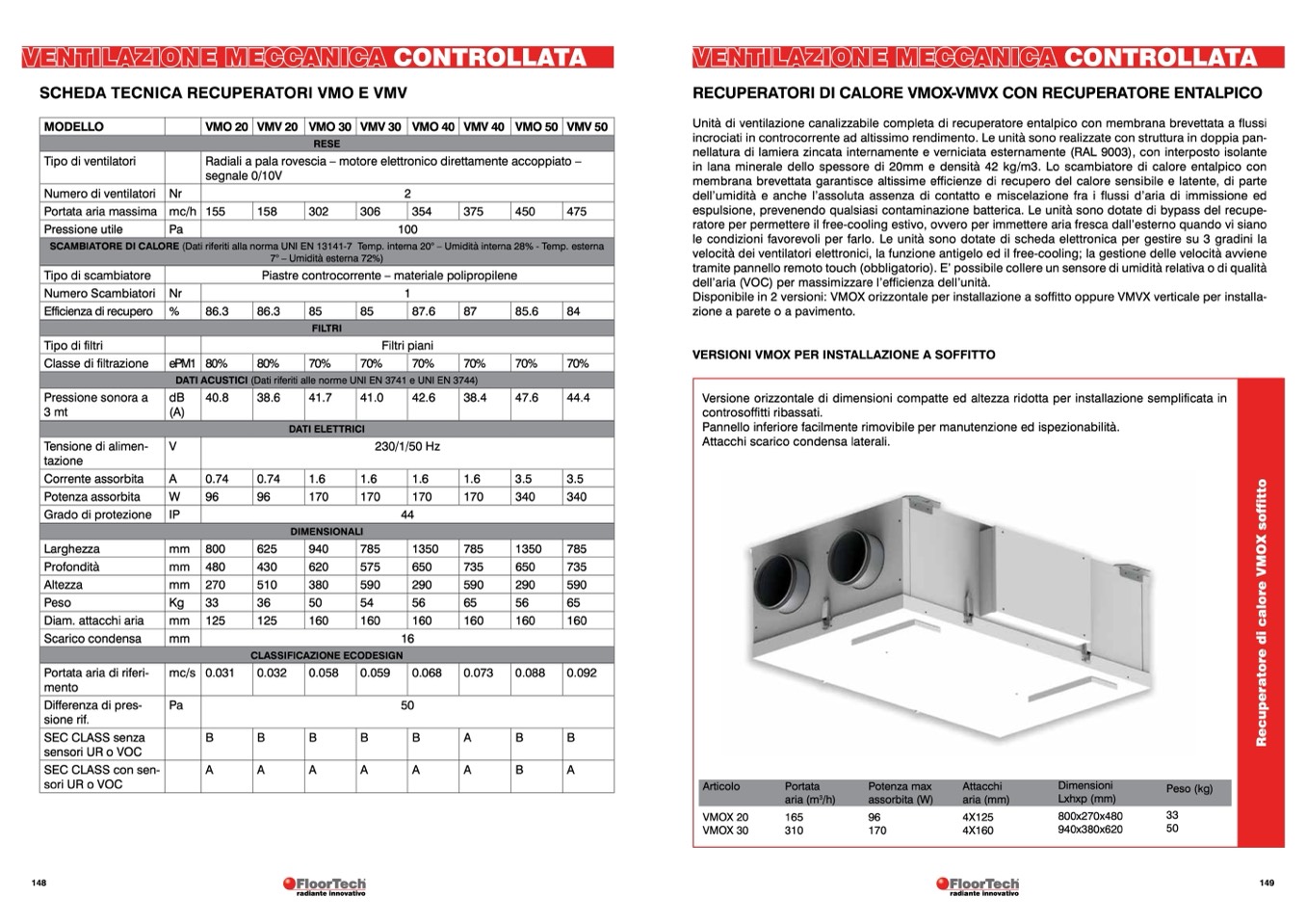 SCHEDA TECNICA RECUPERATORI VMO E VMV