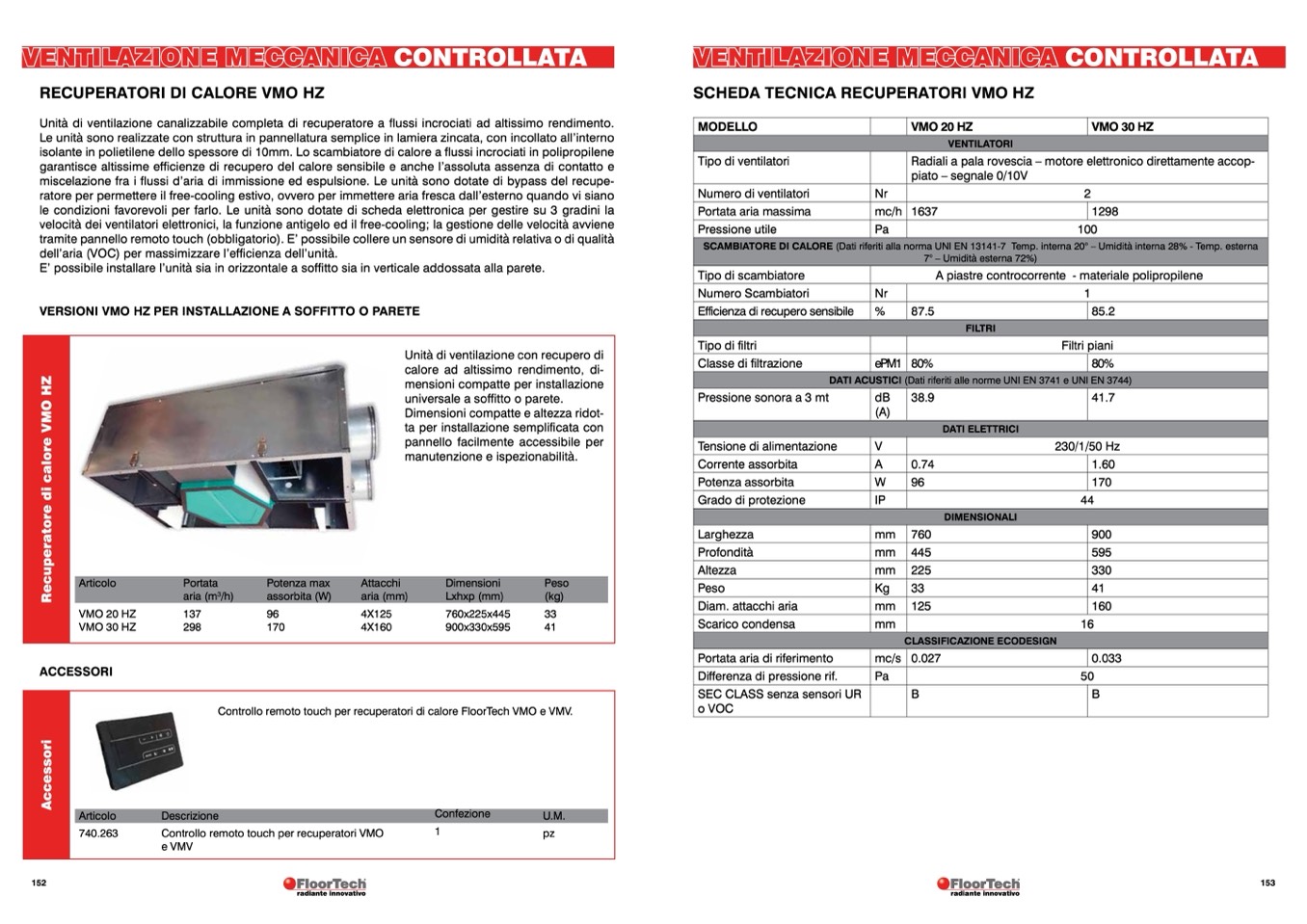 SCHEDA TECNICA RECUPERATORI VMO HZ