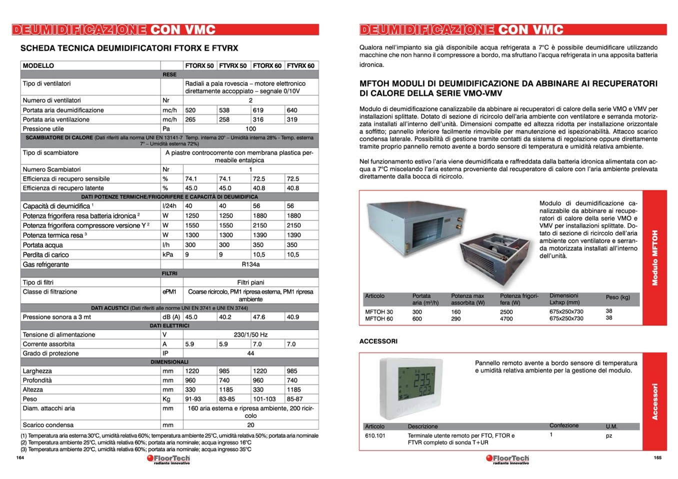 SCHEDA TECNICA DEUMIDIFICATORI FTORX E FTVRX