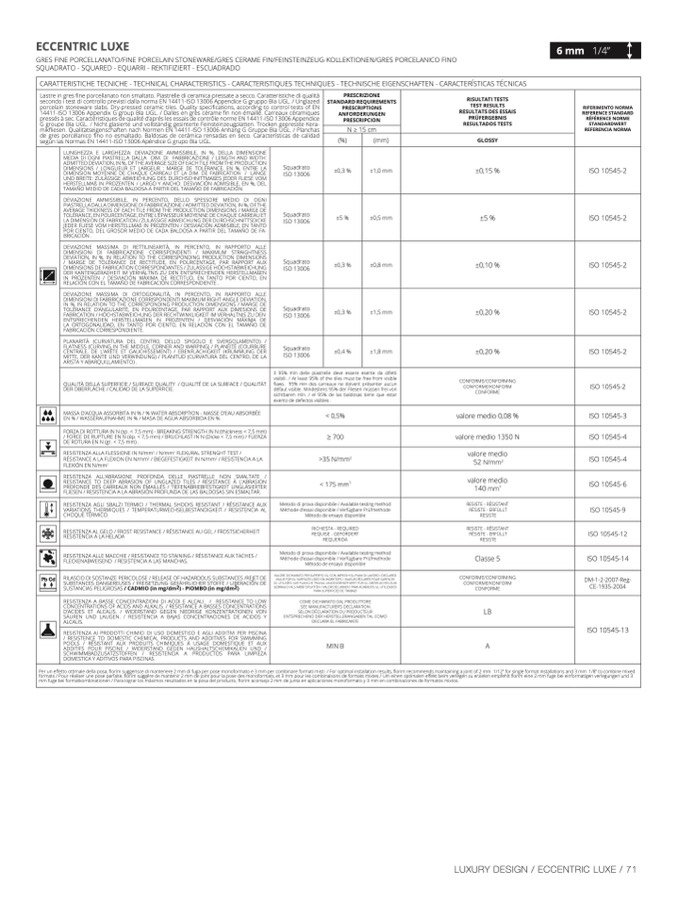 és à sec. Caractéristiques de qualité d’aprés les essais de contrôle norme EN 14411-ISO 13006 Appendic