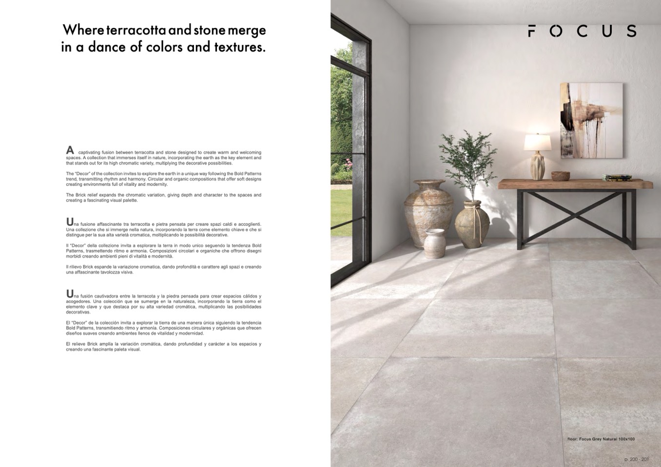 spaces. A collection that immerses itself in nature, incorporating the earth as the key element and