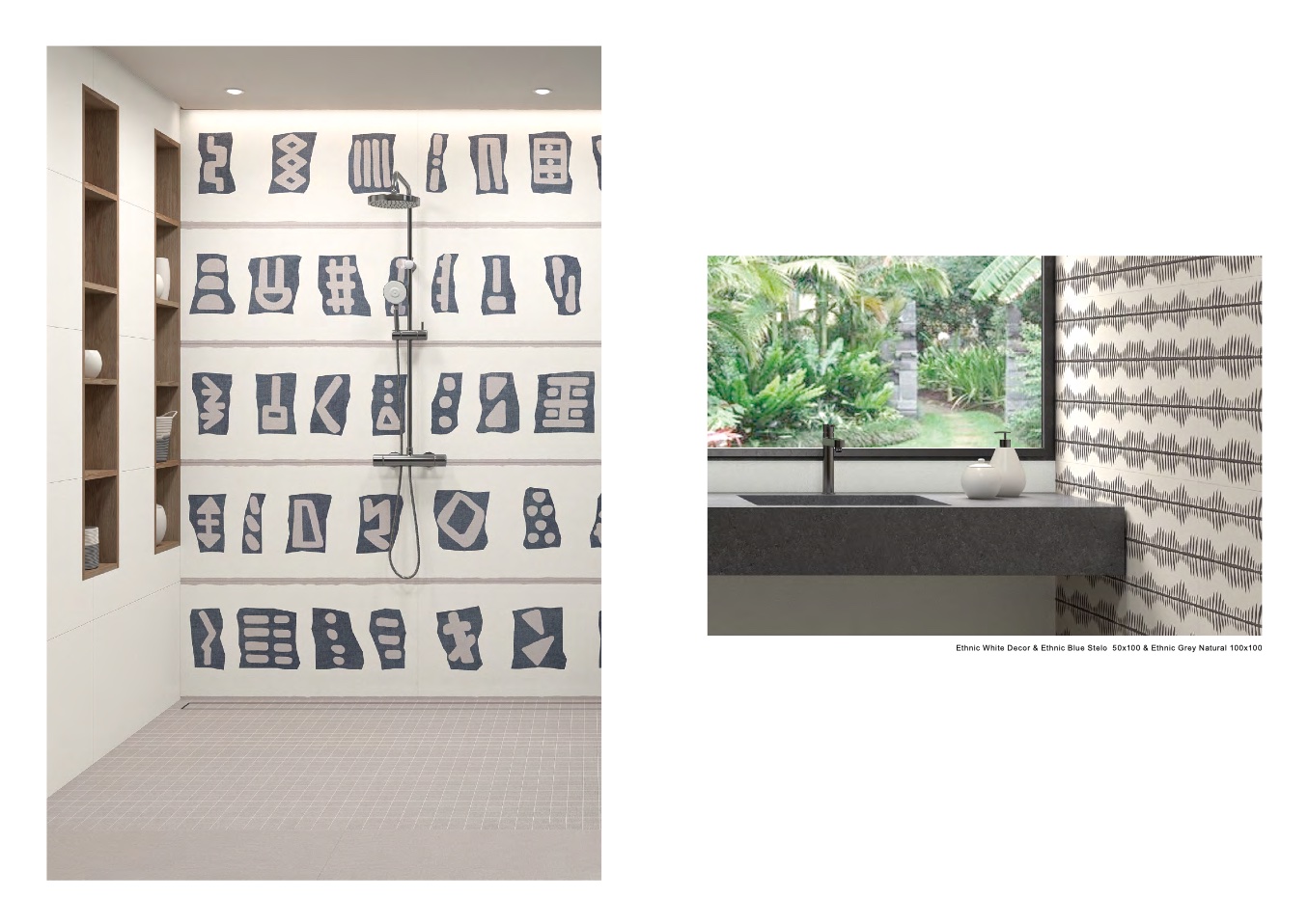 Ethnic White Decor & Ethnic Blue Stelo 50x100 & Ethnic Grey Natural 100x100