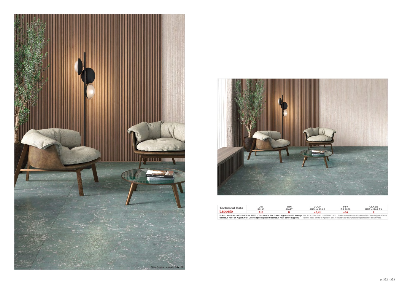 DIN 51130 - DIN 51097 - UNE-ENV 12633. - Test done in Sisu Green Lappato 60x120. Average