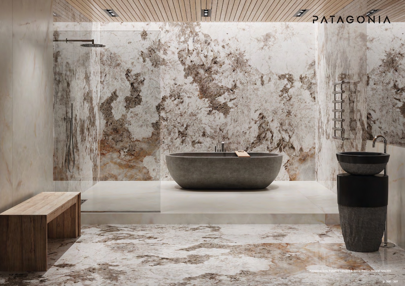 Patagonia Grey Polished 120x300 & Onice Salmon Natural 120x300