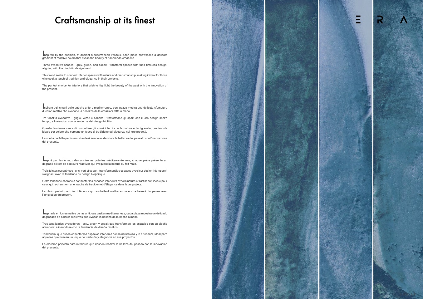 nspirada en los esmaltes de las antiguas vasijas mediterráneas, cada pieza muestra un delicado