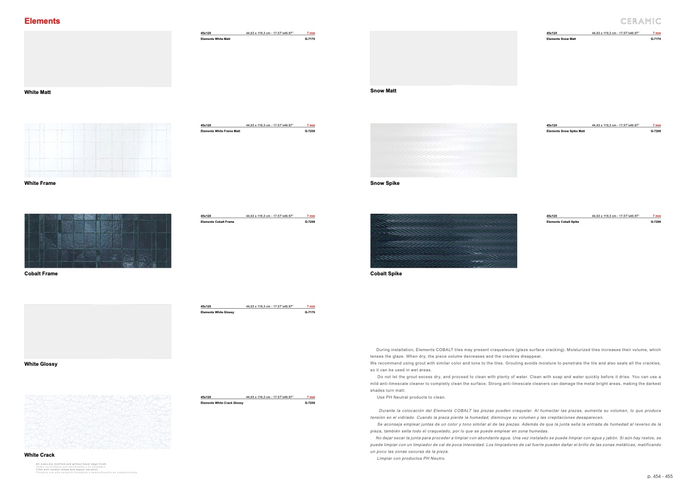 During installation, Elements COBALT tiles may present craqueleure (glaze surface cracking). Moisturized tiles increases their volume, which