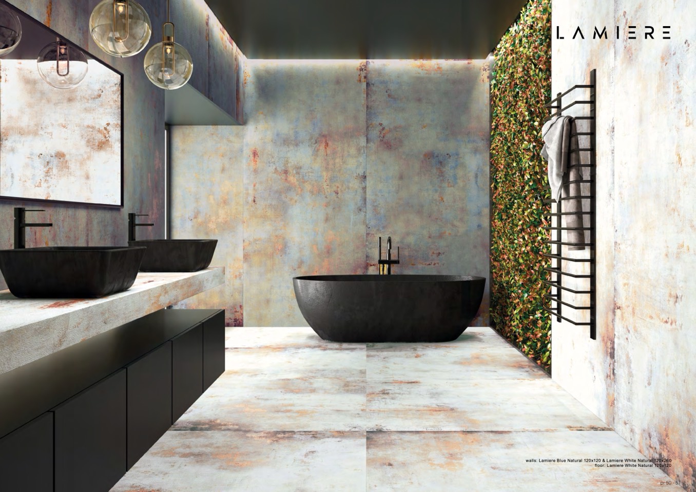 walls: Lamiere Blue Natural 120x120 & Lamiere White Natural 120x260