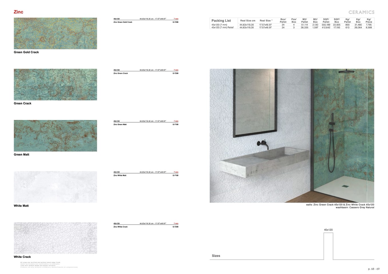 walls: Zinc Green Crack 45x120 & Zinc White Crack 45x120