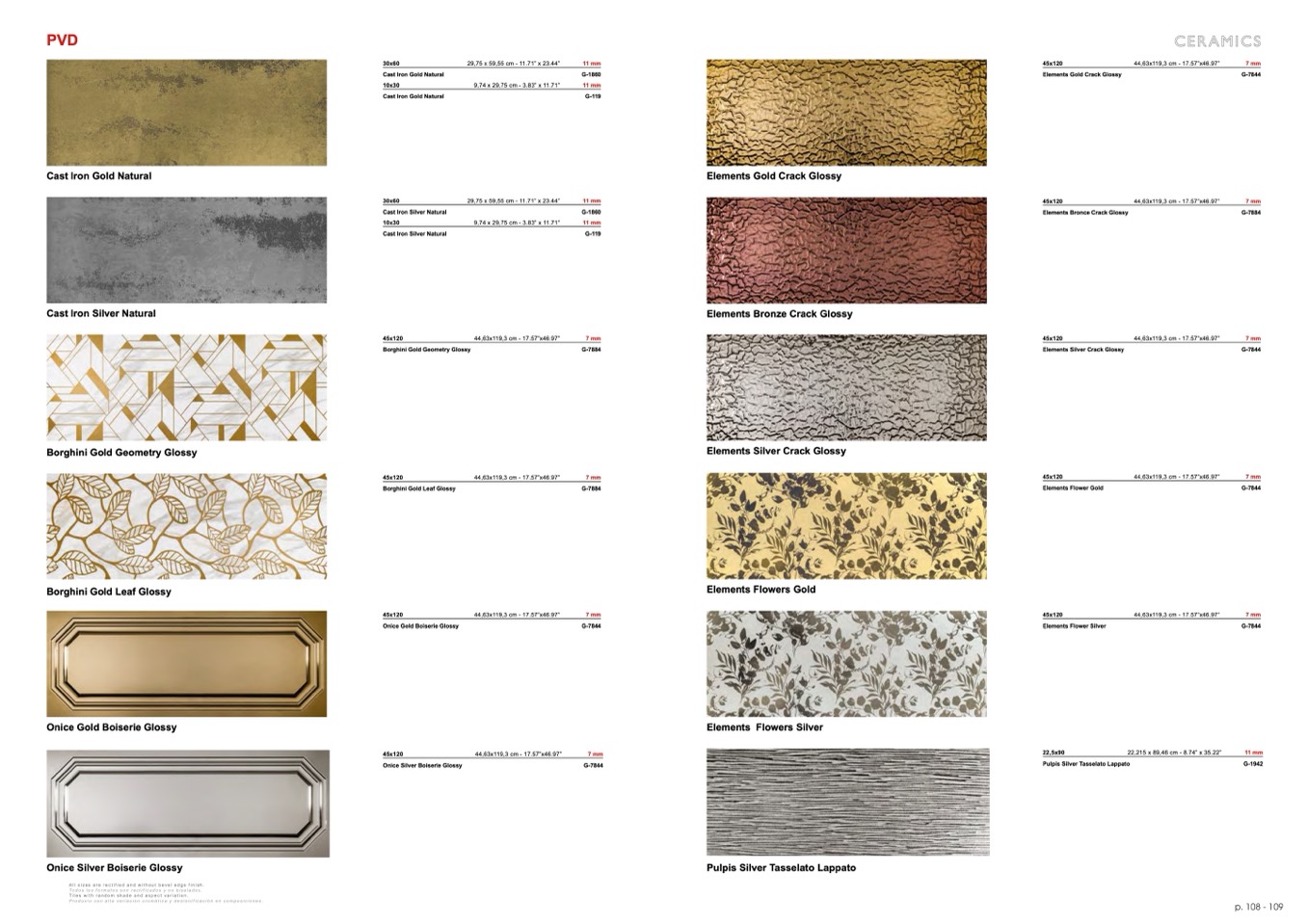 All sizes are rectified and without bevel edge finish.