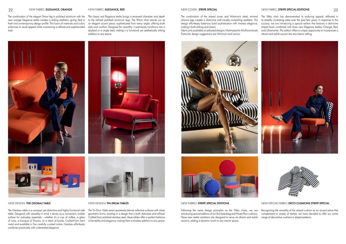striped back combined with three new Elegance textiles: Orange, Red,