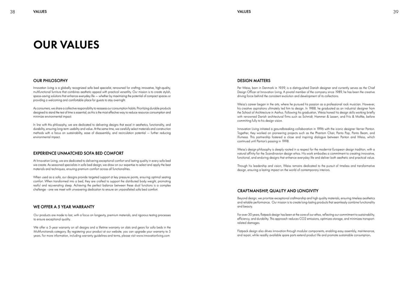 We offer a 5-year warranty on all designs and a lifetime warranty on slats and gears for sofa beds in the