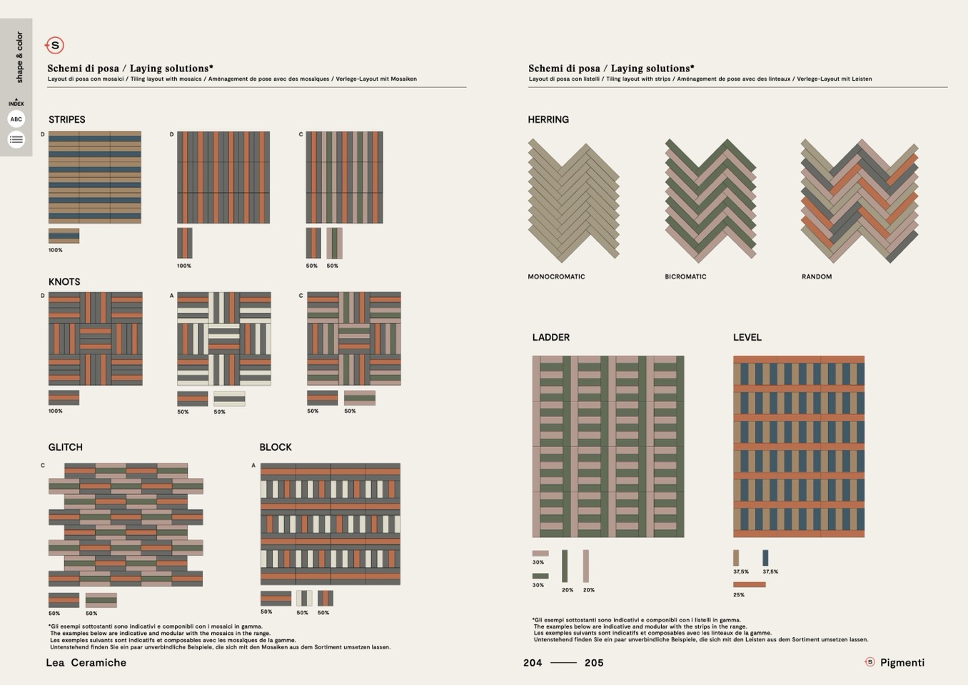 Layout di posa con listelli / Tiling layout with strips / Aménagement de pose avec des linteaux / Verlege-Layout mit Leisten
