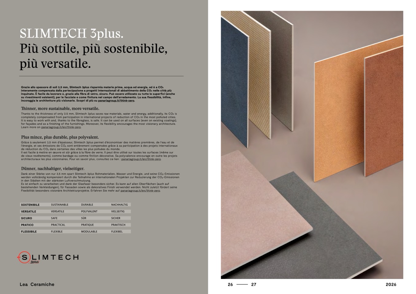 Grazie allo spessore di soli 3,5 mm, Slimtech 3plus risparmia materie prime, acqua ed energia, ed è a CO2