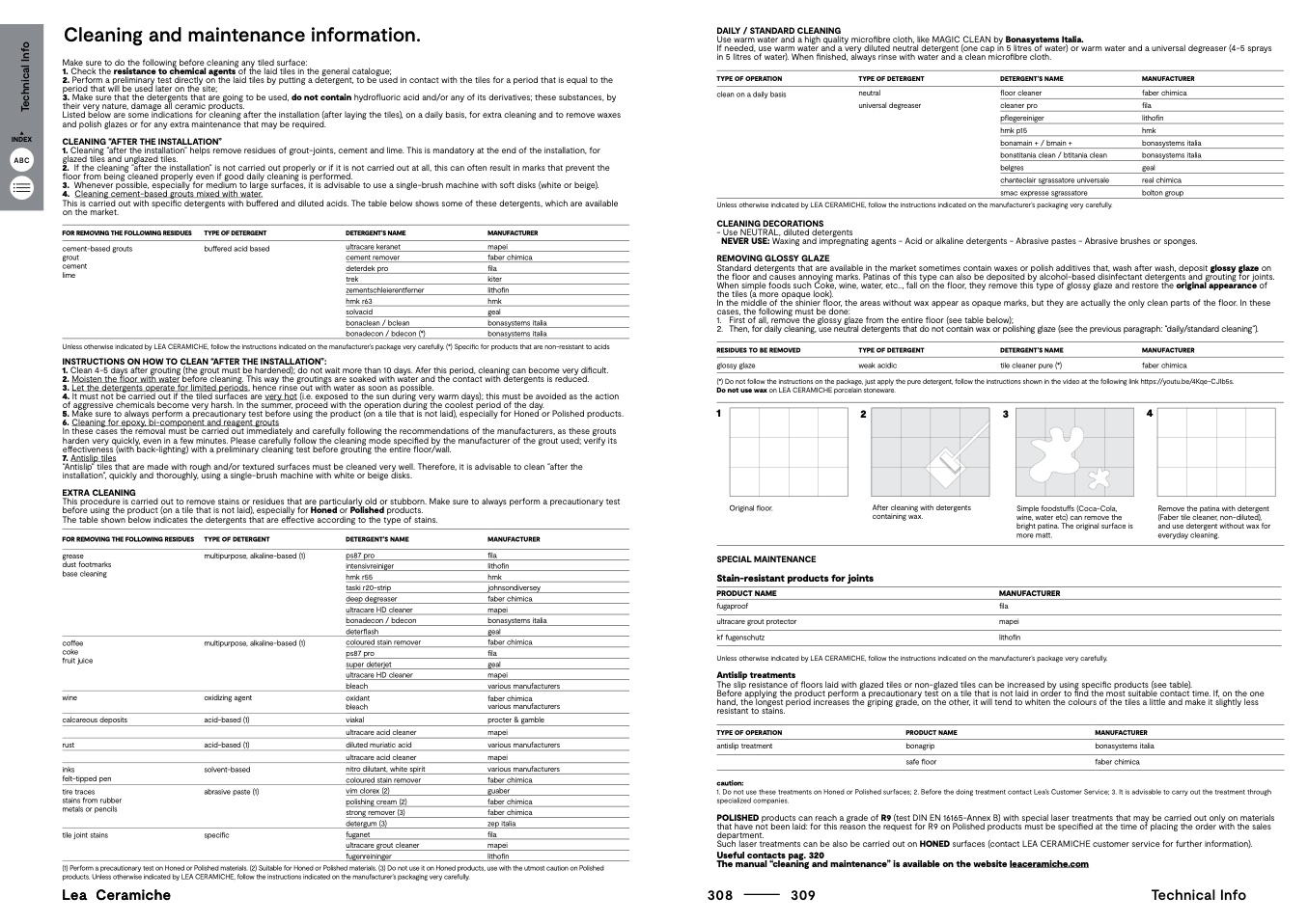 The manual “cleaning and maintenance” is available on the website leaceramiche.com