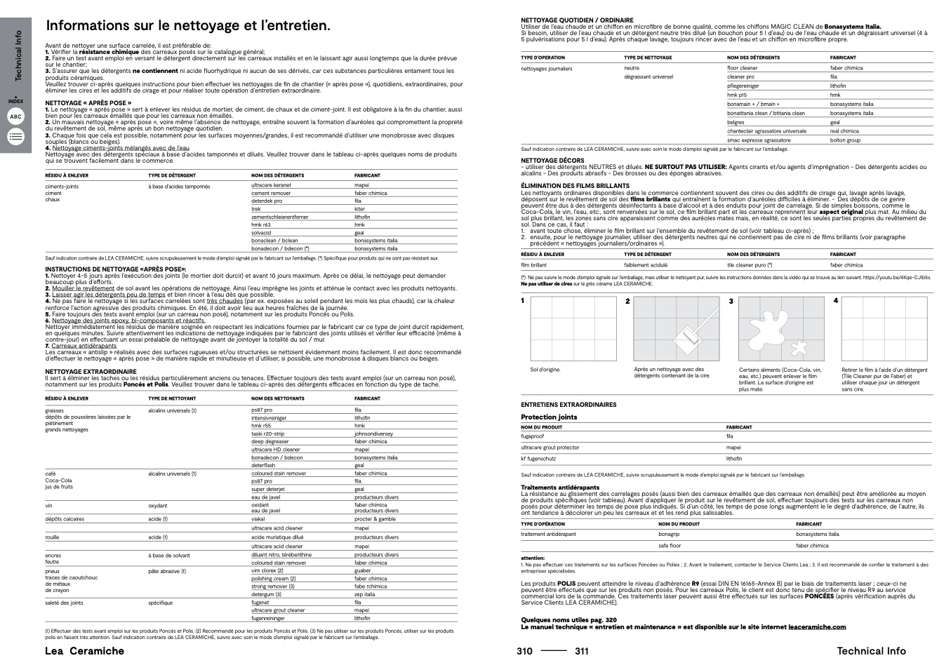 Le manuel technique « entretien et maintenance » est disponible sur le site internet leaceramiche.co