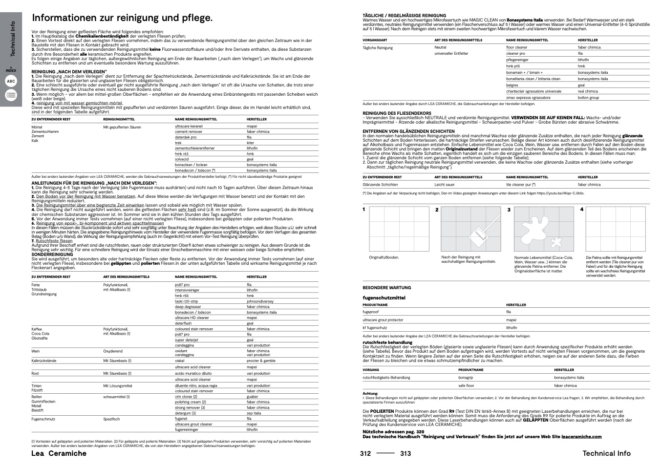 Außer bei anders lautender Angabe der LEA CERAMICHE die Gebrauchsanleitungen der Hersteller befolgen