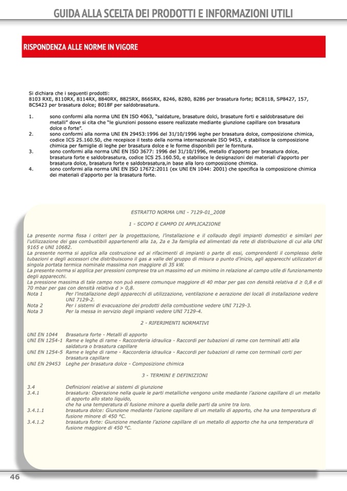 sono conformi alla norma UNI EN ISO 3677: 1996 del 31/10/1996, metallo d’apporto per brasatura dolce,
