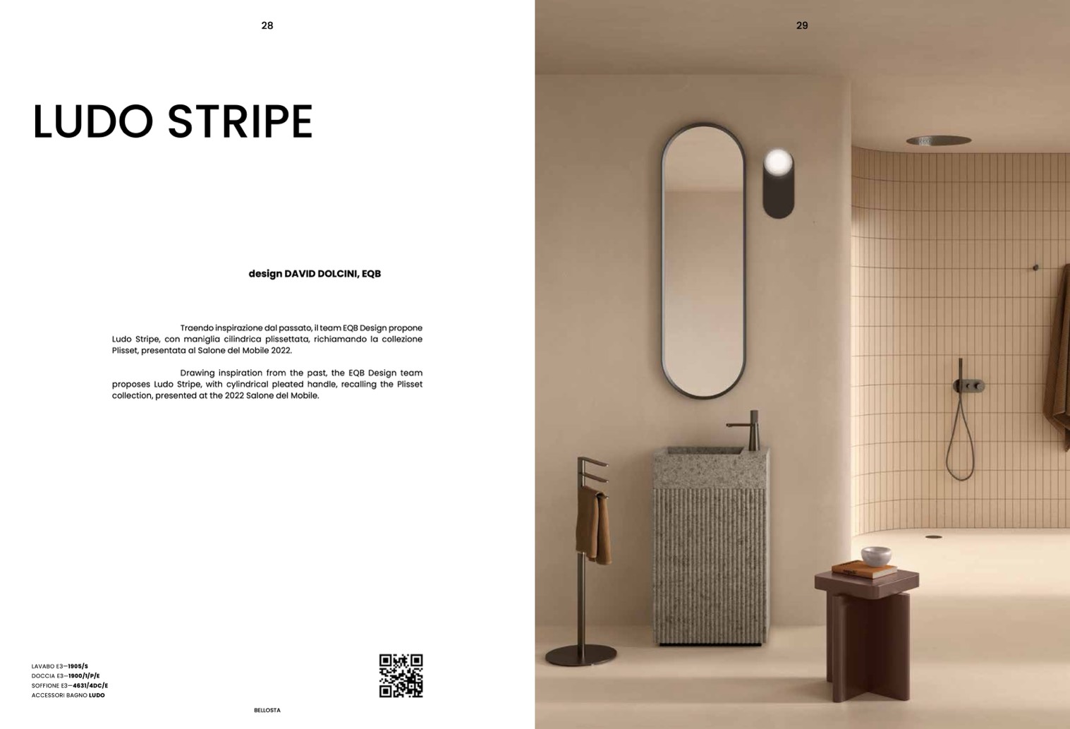 Ludo Stripe, con maniglia cilindrica plissettata, richiamando la collezione