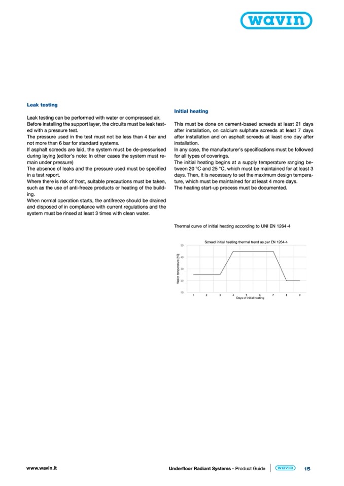 Thermal curve of initial heating according to UNI EN 1264-4
