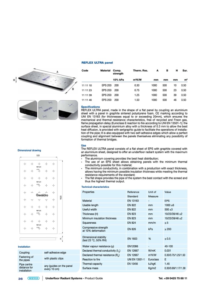 The REFLEX ULTRA panel consists of a flat sheet of EPS with graphite covered with