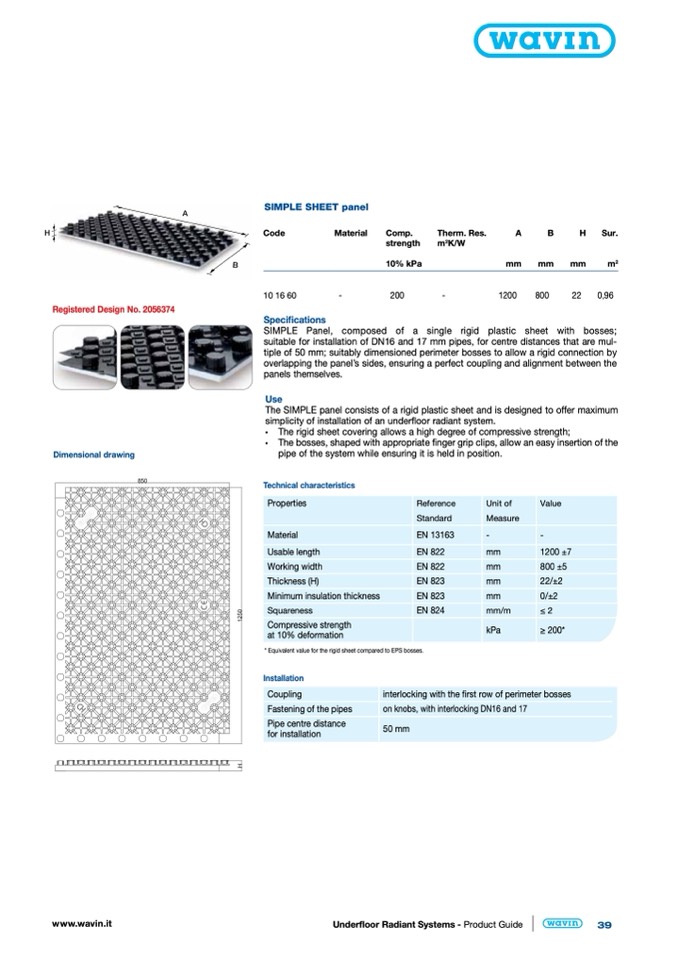 SIMPLE Panel, composed of a single rigid plastic sheet with bosses;