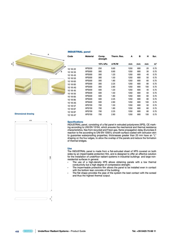 INDUSTRIAL panel, consisting of a flat panel in extruded polystyrene (XPS), CE mark-