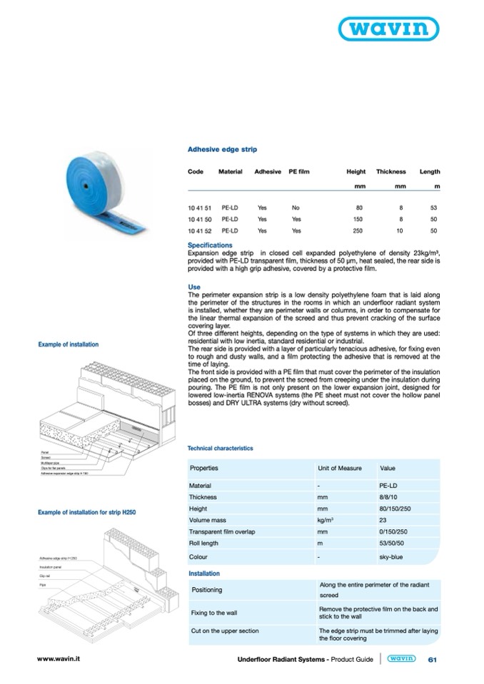 Expansion edge strip in closed cell expanded polyethylene of density 23kg/m3,