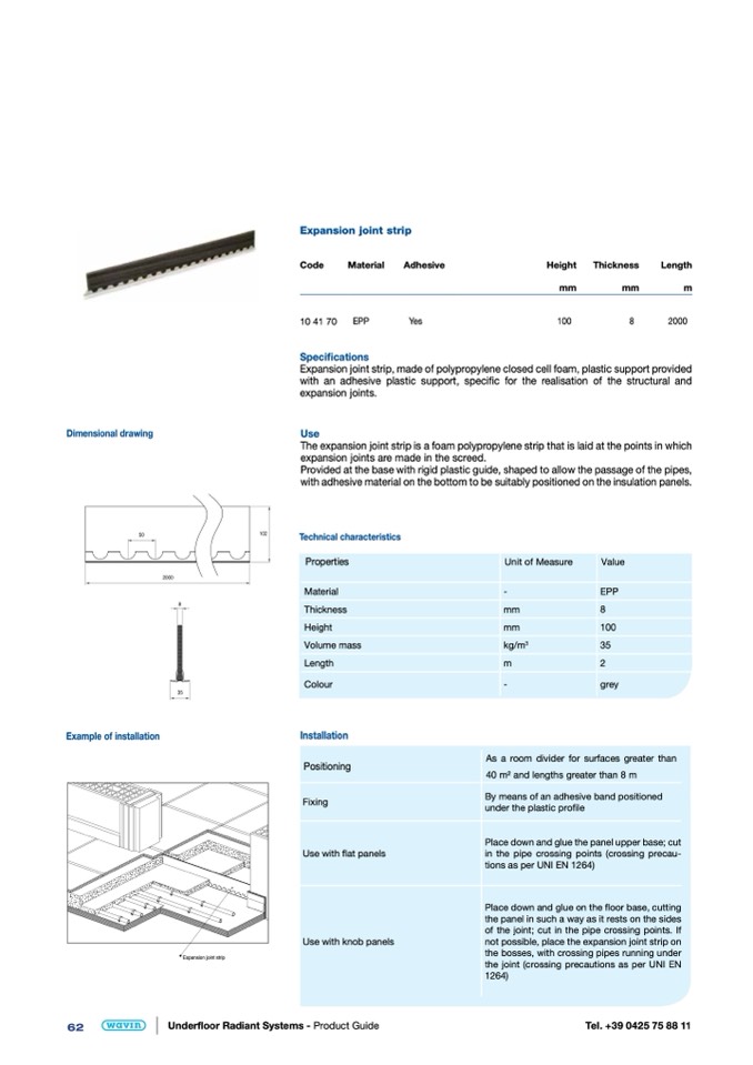 tions as per UNI EN 1264)