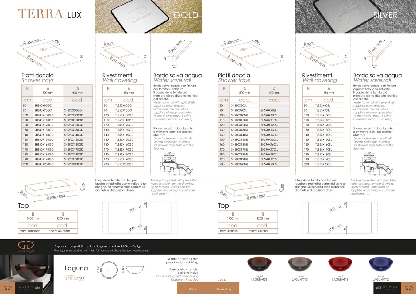 I Top sono compatibili con tutta la gamma di lavabi Glass Design.