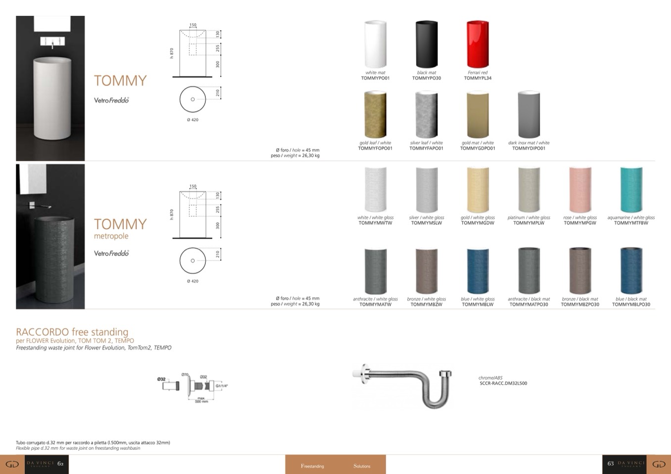 Freestanding waste joint for Flower Evolution, TomTom2, TEMPO