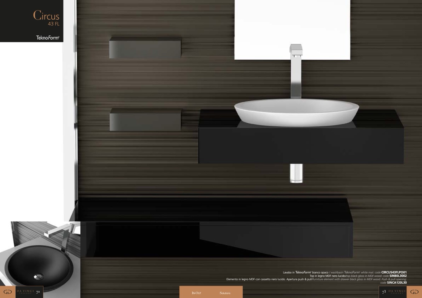 Top in legno MDF nero lucido/top black gloss in MDF wood: code SIN80L3002