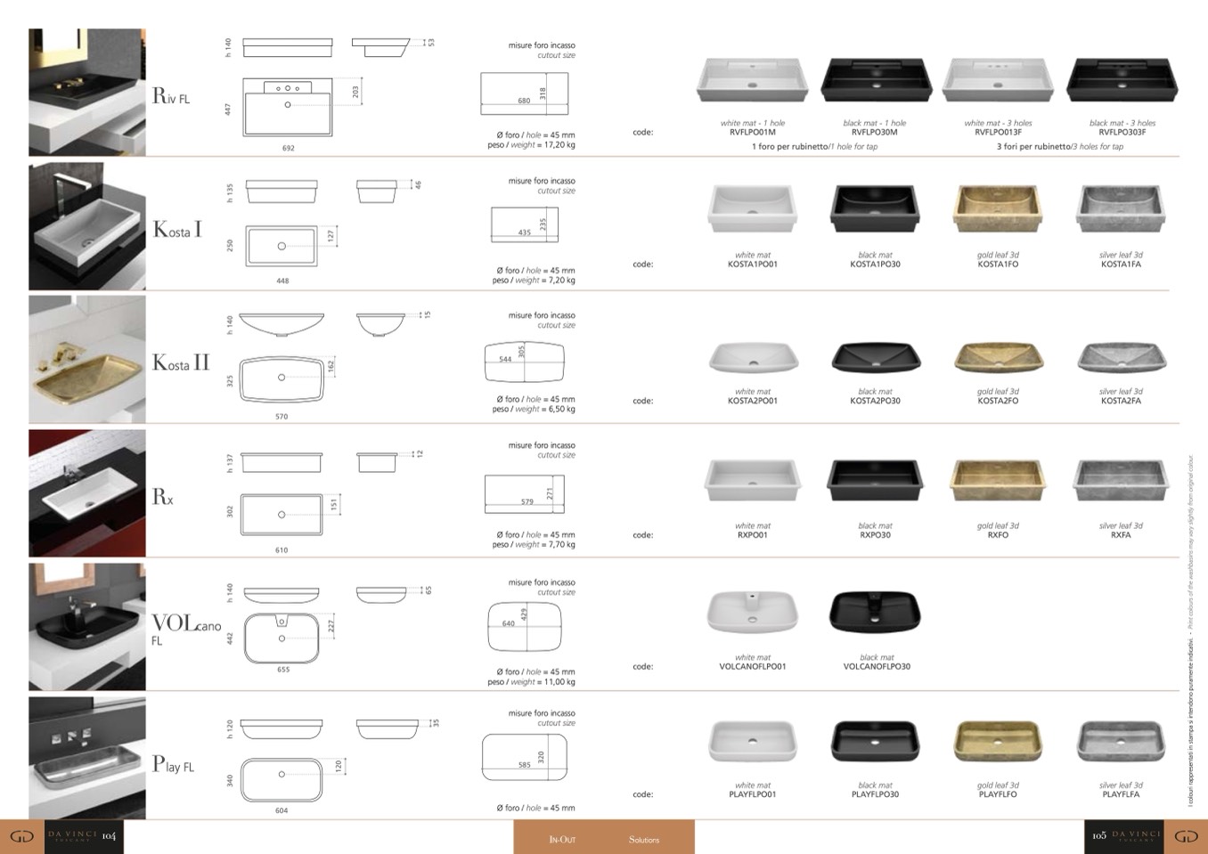 1 foro per rubinetto/1 hole for tap