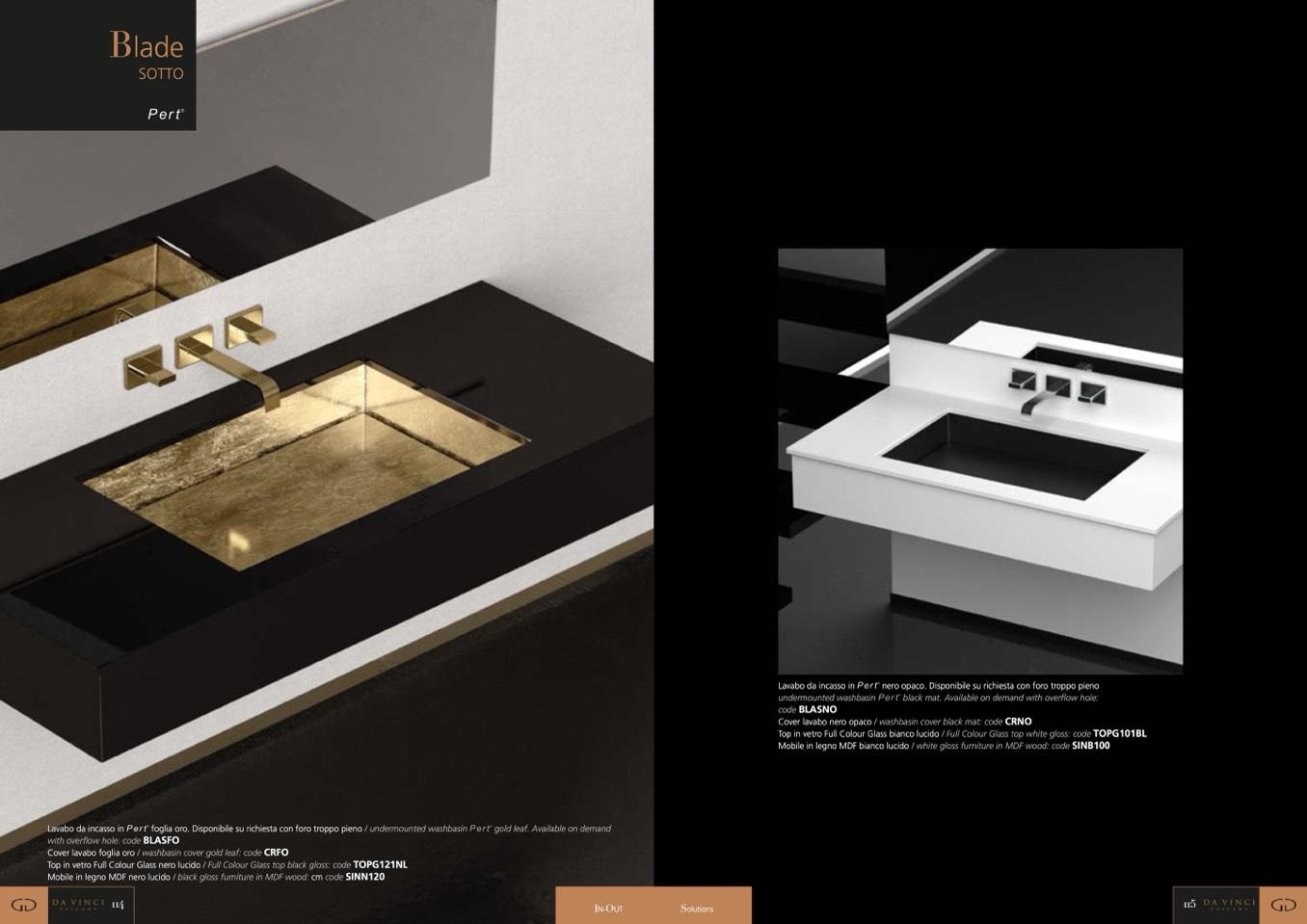 foglia oro. Disponibile su richiesta con foro troppo pieno / undermounted washbasin